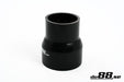 Black silicone hose reducer. A straight hose with different inner diameter in both ends suitable for pressure or suction applications, for example between turbocharger and intercooler or between turbocharger and air filter. Also suitable for cooling systems.