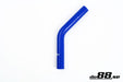 Blue silicone hose 45 degree elbow suitable for pressure or suction applications, for example between turbocharger and intercooler or between turbocharger and air filter. Also suitable for coolingsystems.