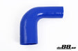 Blue 90 degree reducing elbow silicone hose. This type of hose have different inner diameter in both hose ends. The hose is suitable for pressure or suction applications, for example between turbocharger and intercooler or between turbocharger and air filter. Also suitable for coolingsystems.