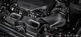 The F56 MINI Eventuri intake system is another example of our “Complete System” principal. It is a sealed system which ensures that the turbo does not draw hot air from the engine bay but enhanced with a functional bonnet scoop which forces ambient air into the intake duct. This duct has a larger internal volume than the stock version and also draws air from the stock location above the radiator. The combination of a sealed system with an air scoop results in lower intake temperatures than the stock airbox and avoids heat soak which is a common issue especially on higher powered MINIs. To ensure the smoothest flow possible we use our Patented filter housing coupled with a CNC machined MAF tube to ensure the smoothest possible flow to the turbo.