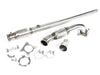 The IE downpipe replaces the majority of the factory exhaust from the turbocharger all the way back to the factory rear exhaust just before the axles. The 16mm turbo flange bolts to the stock or a K04 turbocharger. The downpipe section includes a new mount bracket and utilizes the factory mount points along with a tough interlock core flex section, this allows engine and chassis movement without stressing or cracking your downpipe. Easily connect the downpipe and catted mid-pipe using the simple and strong v-band connection. Finally, the mid pipe mounts to the stock rear exhaust with the included 3" to 60mm slip-fit sleeve, or easily adapt it to your cat-back exhaust of choice. In-house digitally scanned and designed for an exact fit and includes all hardware to make the install easy and straight forward.